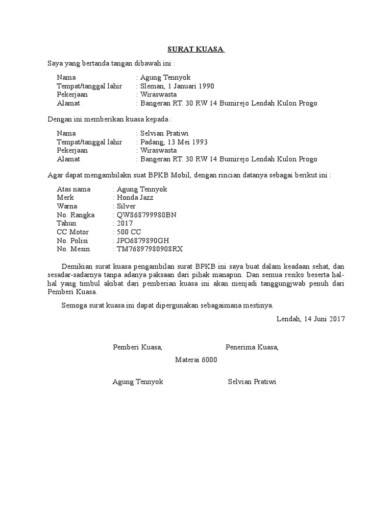 5 Contoh Surat Kuasa Berbagai Keperluan Doc Bataswaktu