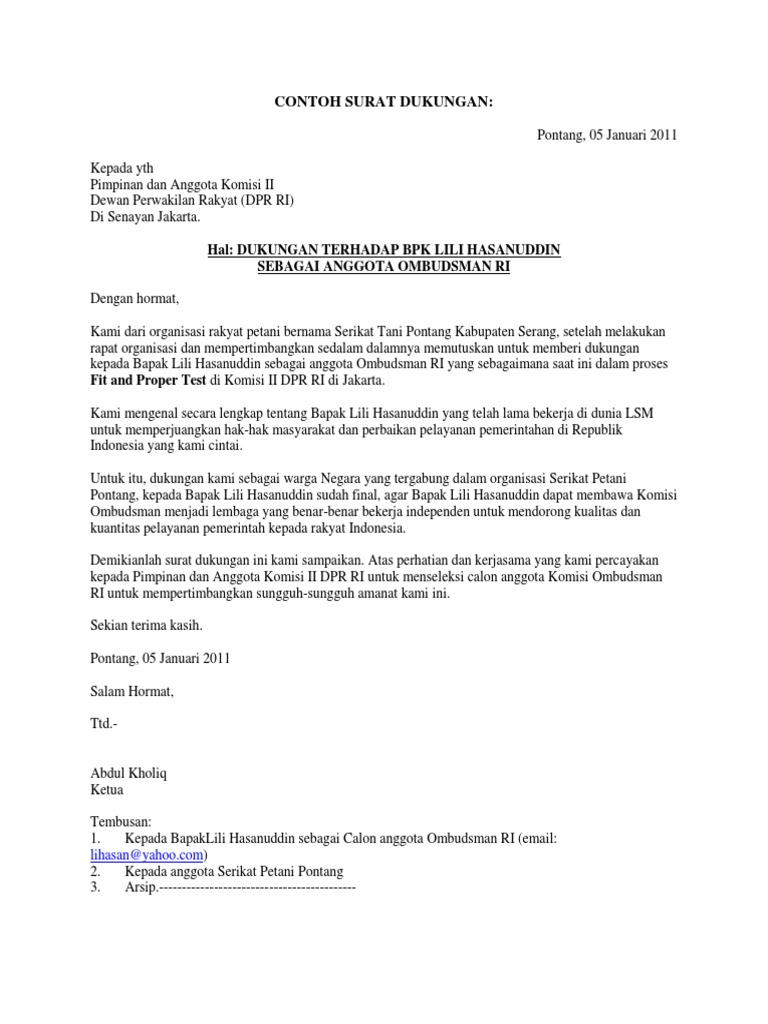 Contoh Format Surat Pernyataan Dukungan Contoh Surat