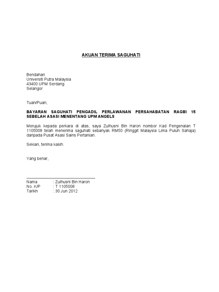 Contoh Surat Akuan Terima Wang Contoh Surat