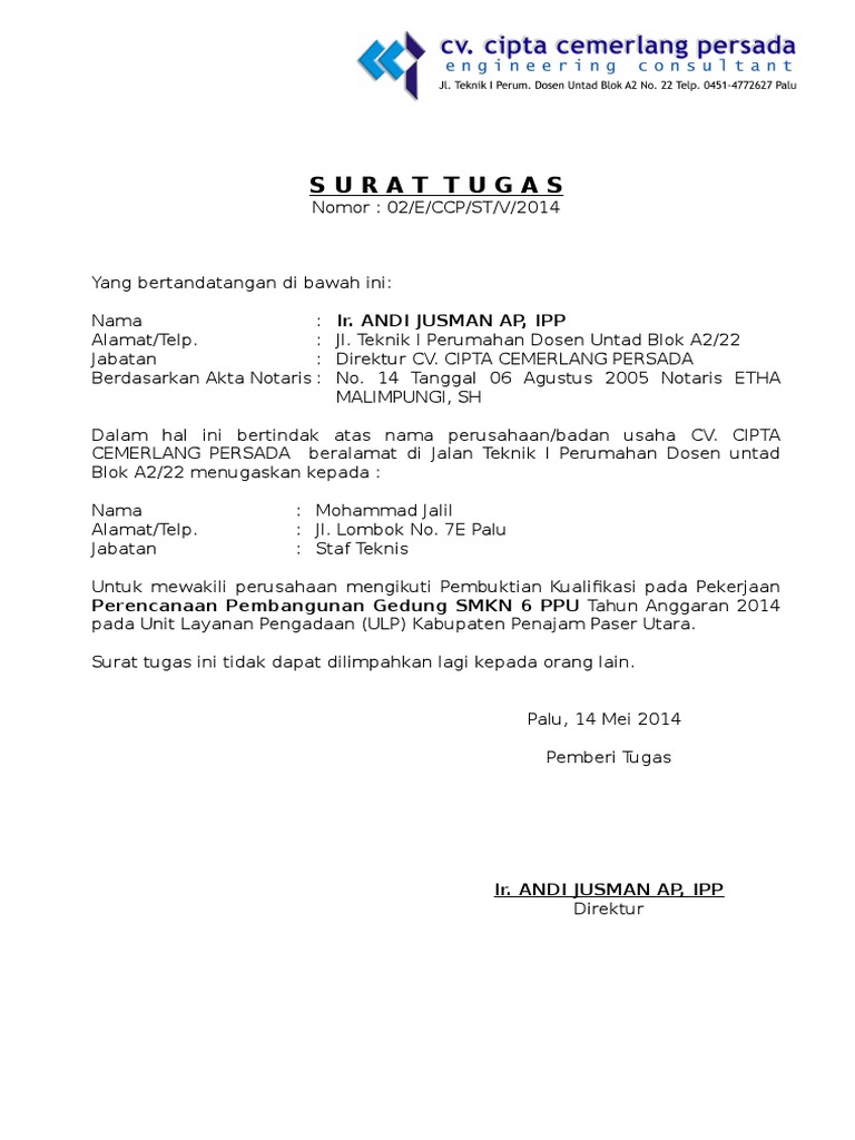 Inilah 6+ Contoh Surat Tugas Perusahaan Kontraktor Terbaik